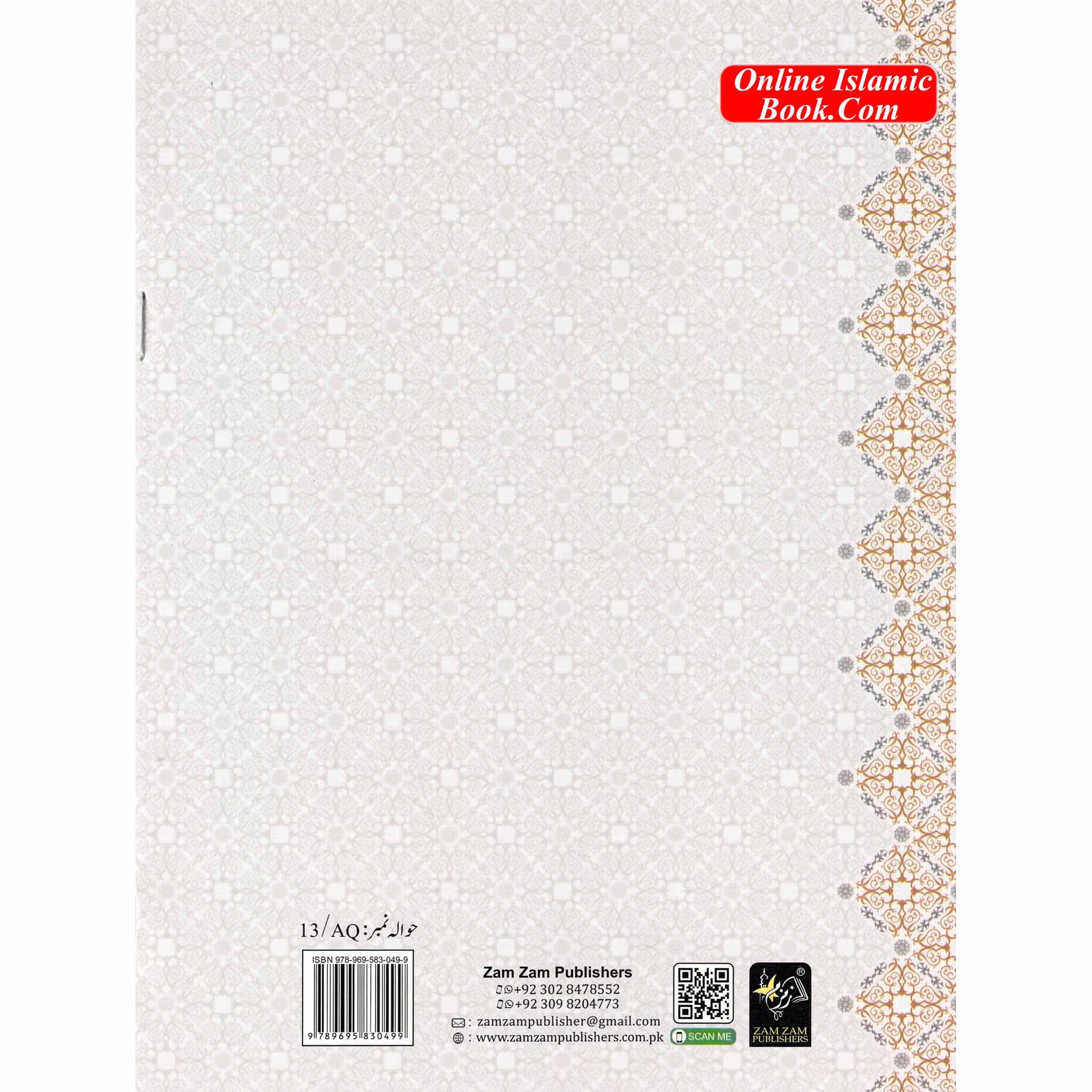 Amma Para Ayat-e-Qurani (13 Lines) by Zam Zam Publishers is a beautifully designed and well-structured Islamic book that helps children, beginners, and even adults learn to recite the Qur’an with confidence and ease. This book focuses on the 30th Juz (Amma Para) of the Qur’an — a section filled with short surahs rich in guidance, moral lessons, and messages of patience, purity, and reliance upon Allah (ﷻ).