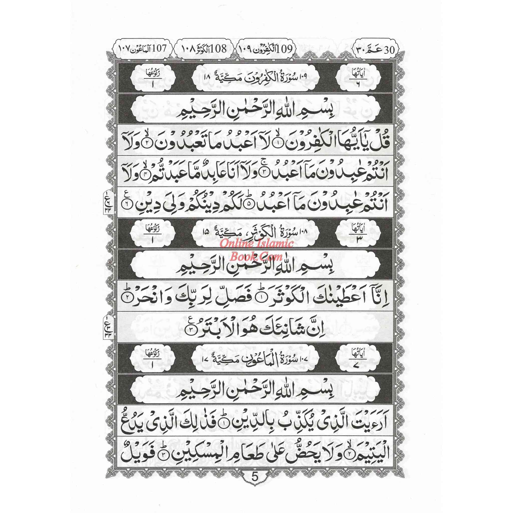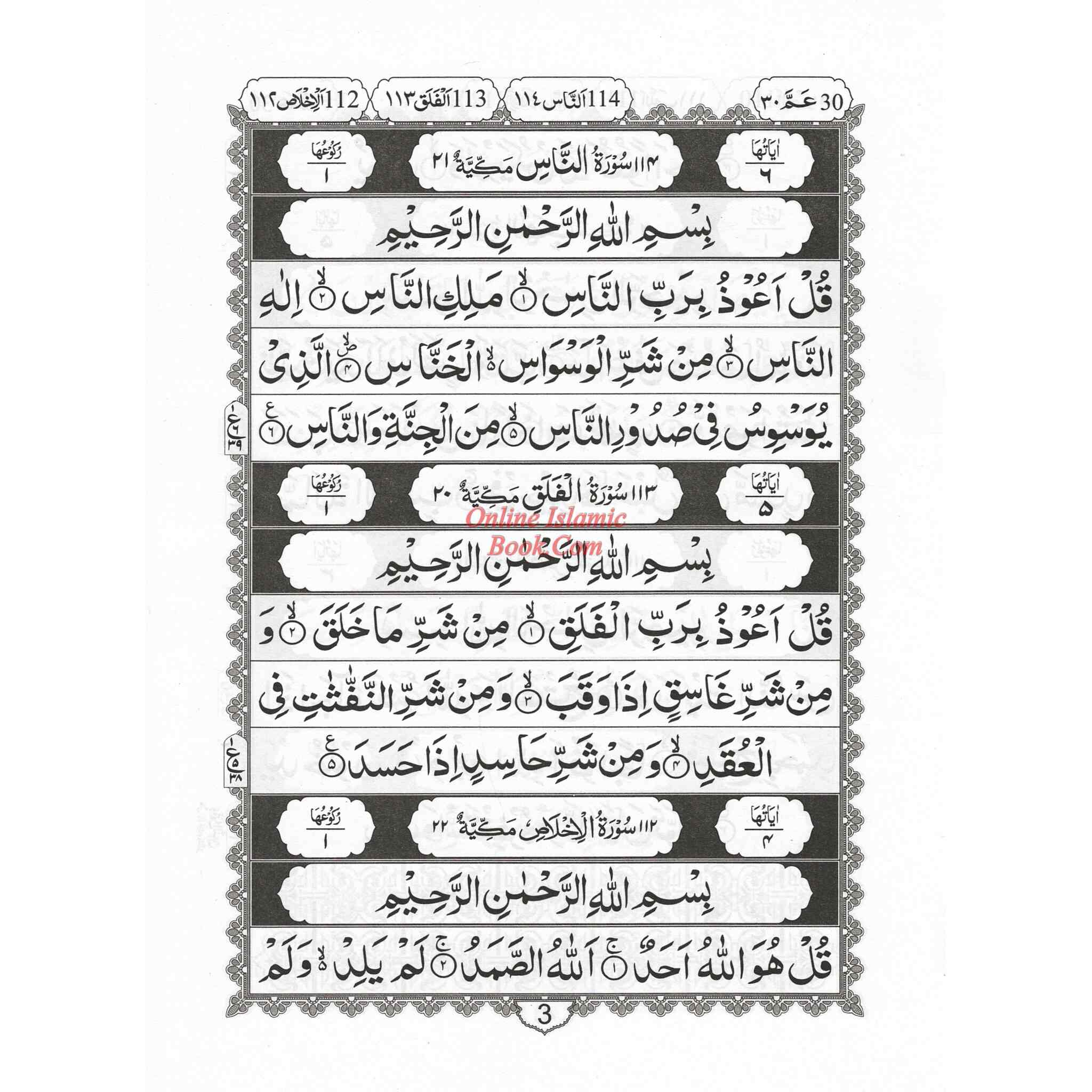 Juzz Amma 13 Line Black and White (Persian/Pakistani) Script Ref 13/AQ, Ayat-e-Qurani