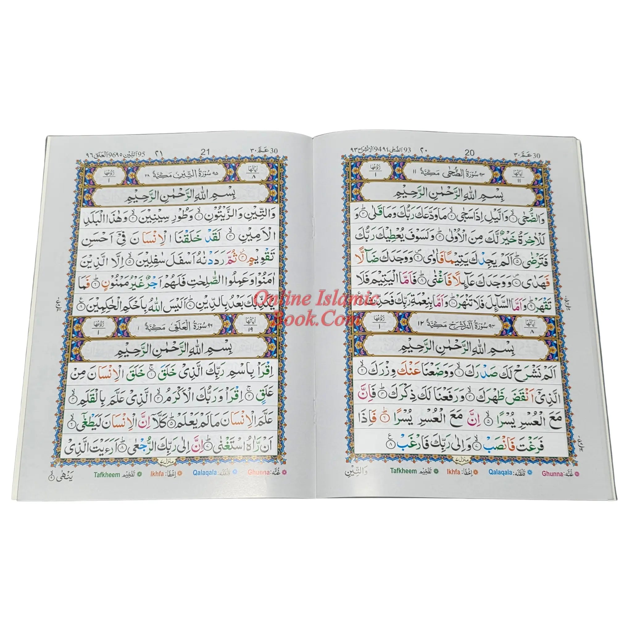 The Quranic text in the book is color-coded to indicate the various Tajweed rules. This makes it easy for students to identify the rules they need to apply while reciting the Quran.