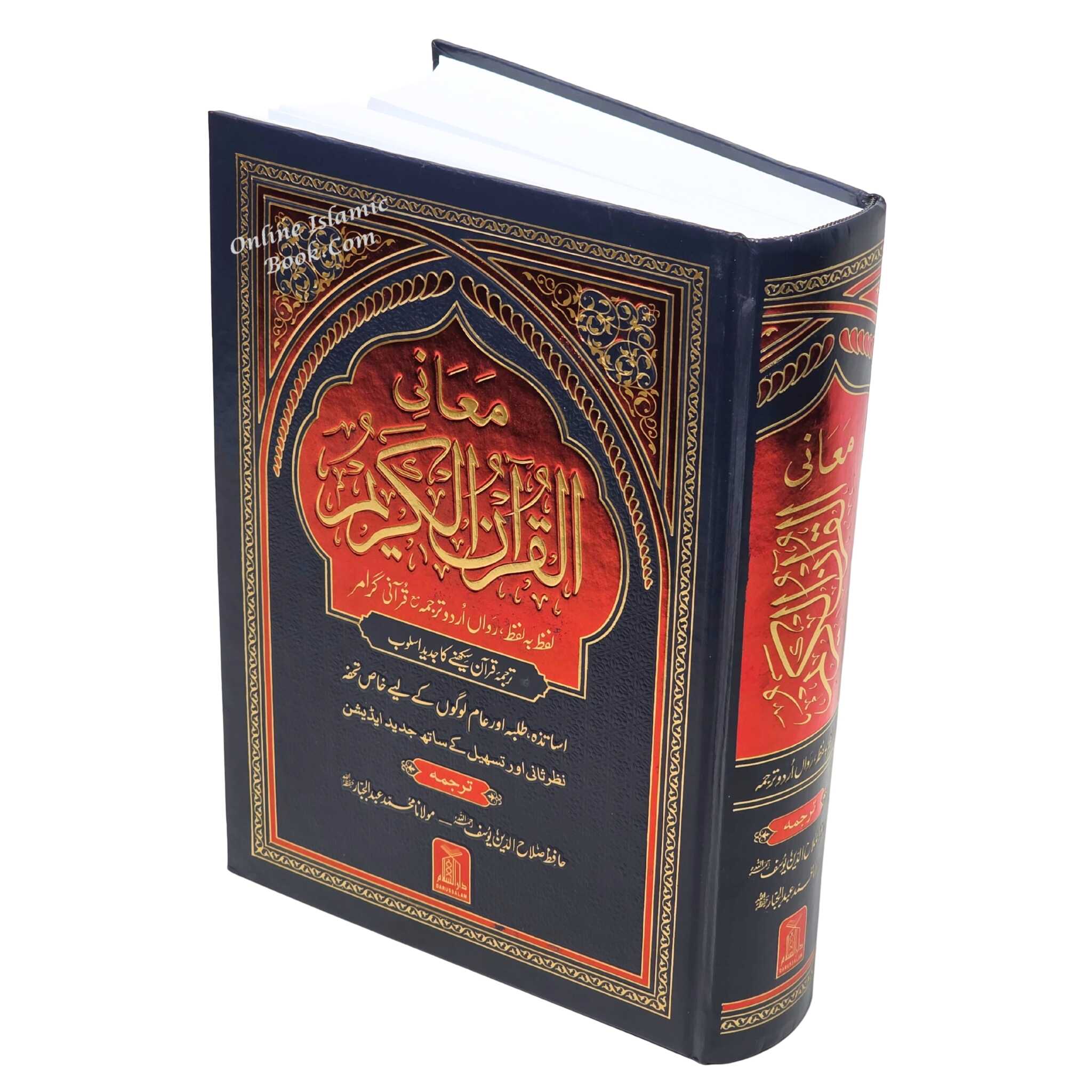 اس کتاب کے بارے میں:"القرآن الکریم لافز با لافز اردو ترجمہ" ایک غیر معمولی اور ضروری وسیلہ ہے جو قرآن پاک کو اردو میں فراہم کرتا ہے، لفظ بہ لفظ ترجمہ پر زور دیتا ہے۔ یہ کتاب قطعی طور پر اس لیے بنائی گئی ہے کہ قارئین کو قرآنی متن کا گہرا فہم حاصل کرنے میں مدد ملے، اور مقدس لٹریچر کا گہرا مطالعہ کیا جائے۔کلیدی خصوصیات میں شامل ہیں:لفظ بہ لفظ ترجمہ:اس کتاب میں قرآنی متن کا اردو میں لفظ بہ لفظ ترجمہ کیا گیا ہے۔ یہ عربی آیات کو ان کے اردو کے مساوی الفاظ سے جوڑتا ہے، جس سے قارئین قرآن کے مفہوم کو مکمل اور لغوی انداز میں چھان سکتے ہیں۔اردو زبان:یہ ایڈیشن ان قارئین کو پورا کرتا ہے جو اردو ترجمہ کے ساتھ زیادہ آرام دہ ہیں، قرآن کے اسباق کو وسیع تر سامعین کے لیے زیادہ قابل رسائی بناتا ہے۔جامع فہم:اس ترجمے کی لفظ بہ لفظ ساخت قارئین کو قرآن کے مفہوم میں گہرائی سے جانے کی اجازت دیتی ہے اور متن کی زیادہ جامع فہم کو فروغ دیتے ہوئے مخصوص الفاظ اور فقروں کی وضاحت فراہم کرتی ہے۔آیت بہ آیت سیدھ:قرآنی آیات بالکل ٹھیک ترتیب دی گئی ہیں، اصل متن کی ساخت اور اردو ترجمہ کے ساتھ اس کا تعلق برقرار ہے۔اہمیت:"القرآن الکریم لفز با لافز اردو ترجمہ" اردو بولنے والے لوگوں، قرآن کے طلباء، اور مقدس صحیفے کے گہرے اور لغوی علم میں دلچسپی رکھنے والے ہر فرد کے لیے انتہائی اہم ہے۔ یہ اردو میں ہر لفظ اور جملے کی پیچیدگیوں کو تلاش کرکے قرآن کے اسباق کے ساتھ تعامل کا ایک منفرد موقع فراہم کرتا ہے۔عملی مثال:یہ ایڈیشن ان افراد کے لیے ایک مفید ذریعہ ہے جو قرآن کے پیغام کے بارے میں اپنی سمجھ کو بہتر بنانا چاہتے ہیں۔ لفظ بہ لفظ ترجمہ کا طریقہ قارئین کو نہ صرف مجموعی معنی بلکہ قرآنی متن کی باریکیوں کو بھی سمجھنے میں مدد کرتا ہے، جس کے نتیجے میں مقدس صحیفے کے ساتھ گہرا تعلق ہوتا ہے۔